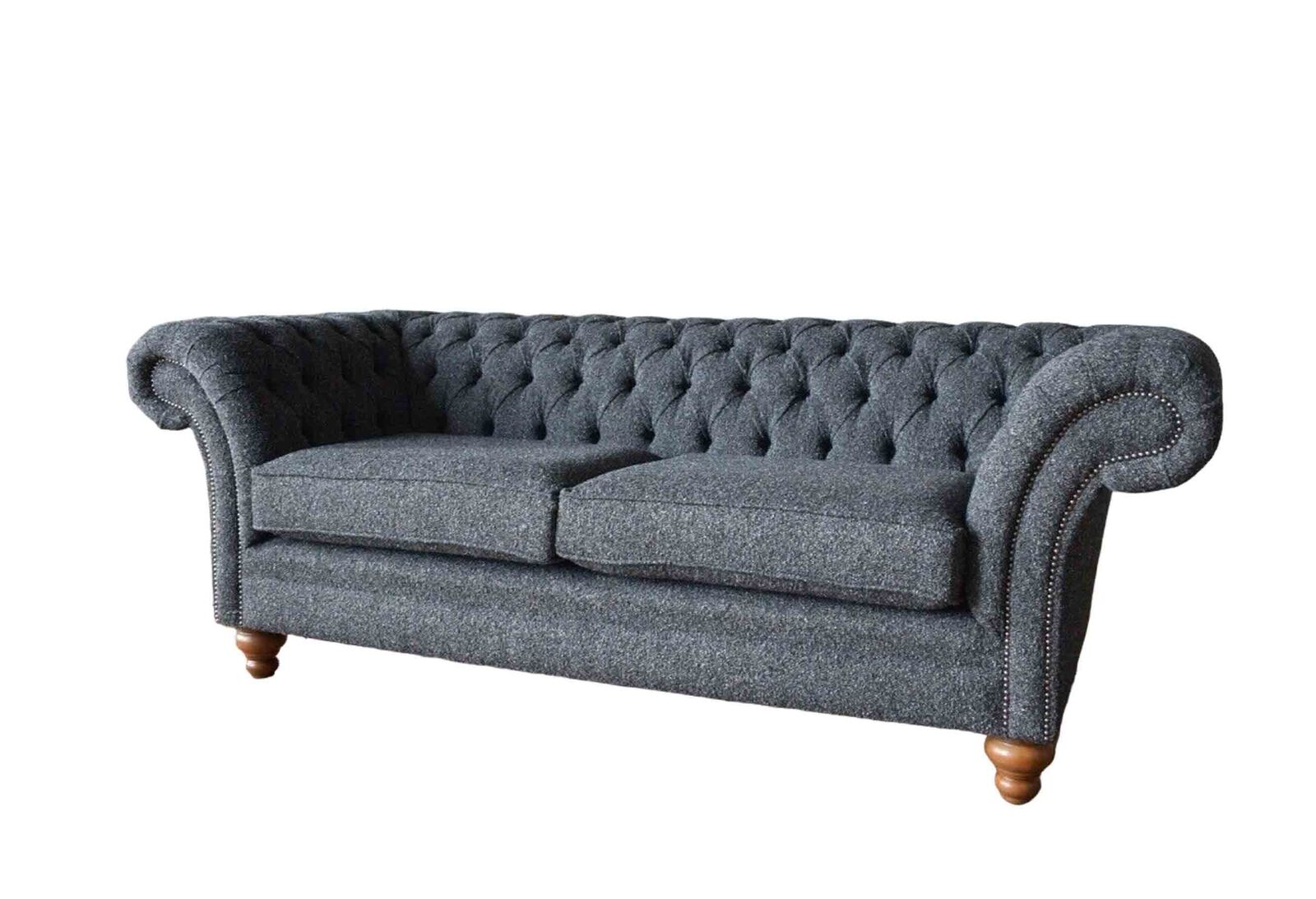 Graue Chesterfield 3 Sitzer Grau Textil Design Couchen Polster Sofas