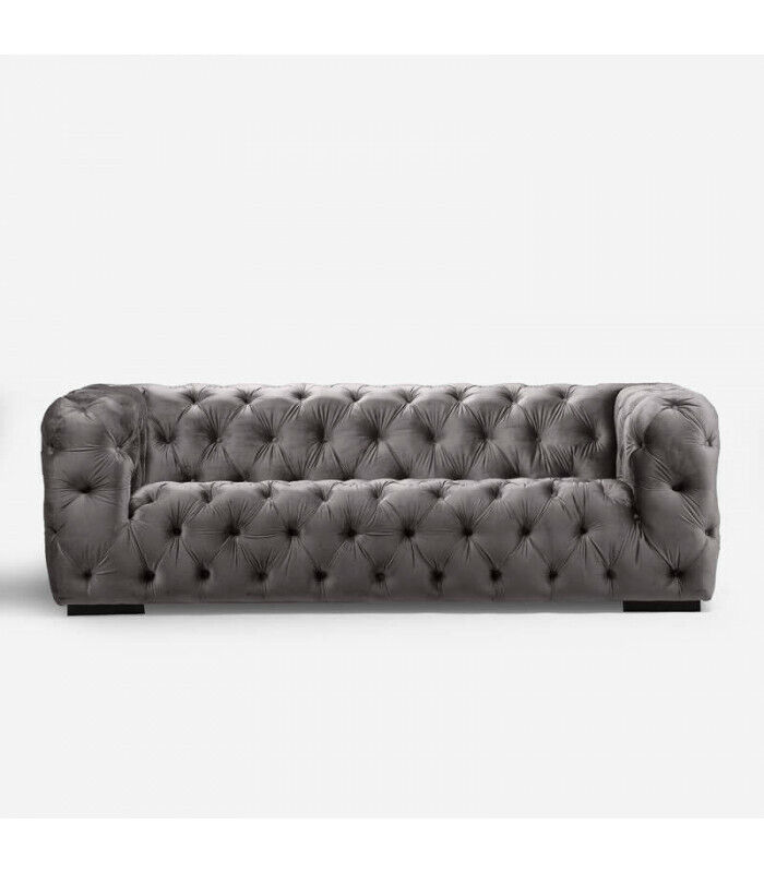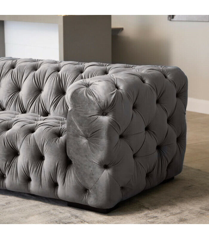 Grauer Chesterfield Dreisitzer Couch Gepolsterter Stil Möbel