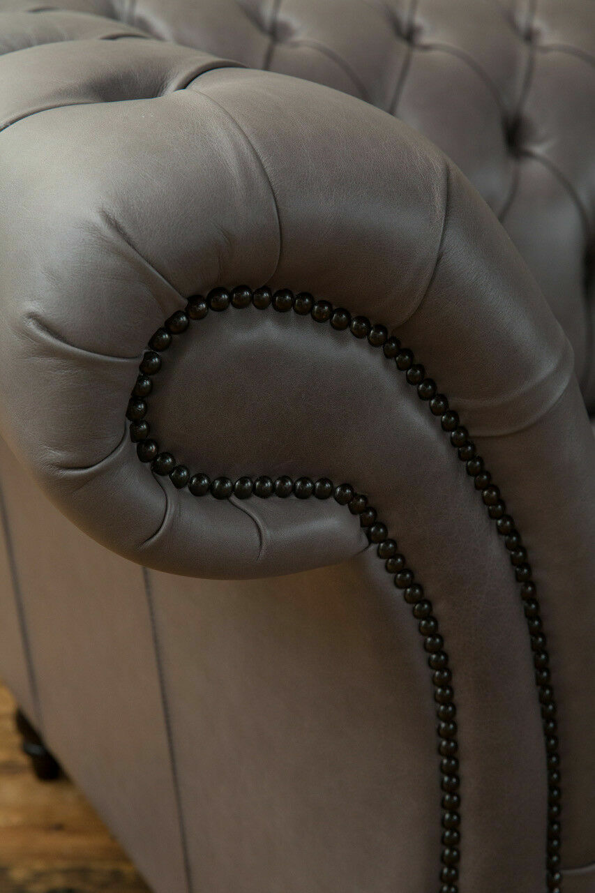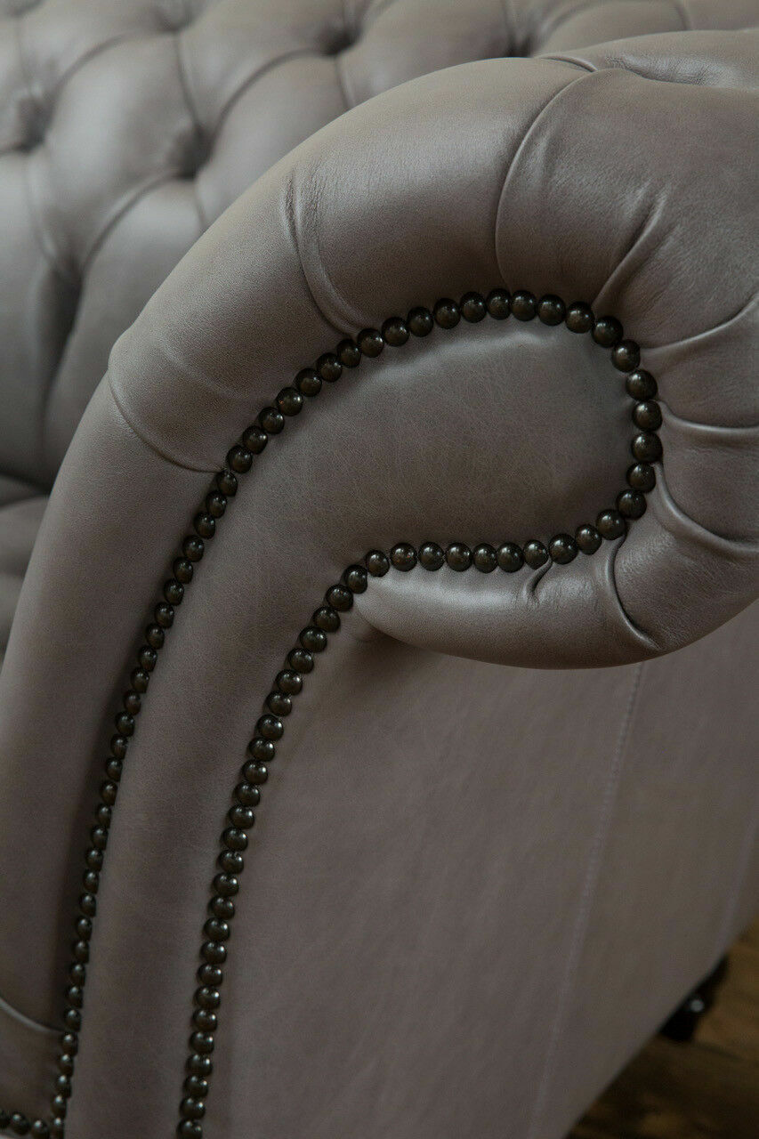Grauer Chesterfield Dreisitzer Exklusive Wohnzimmer Couch