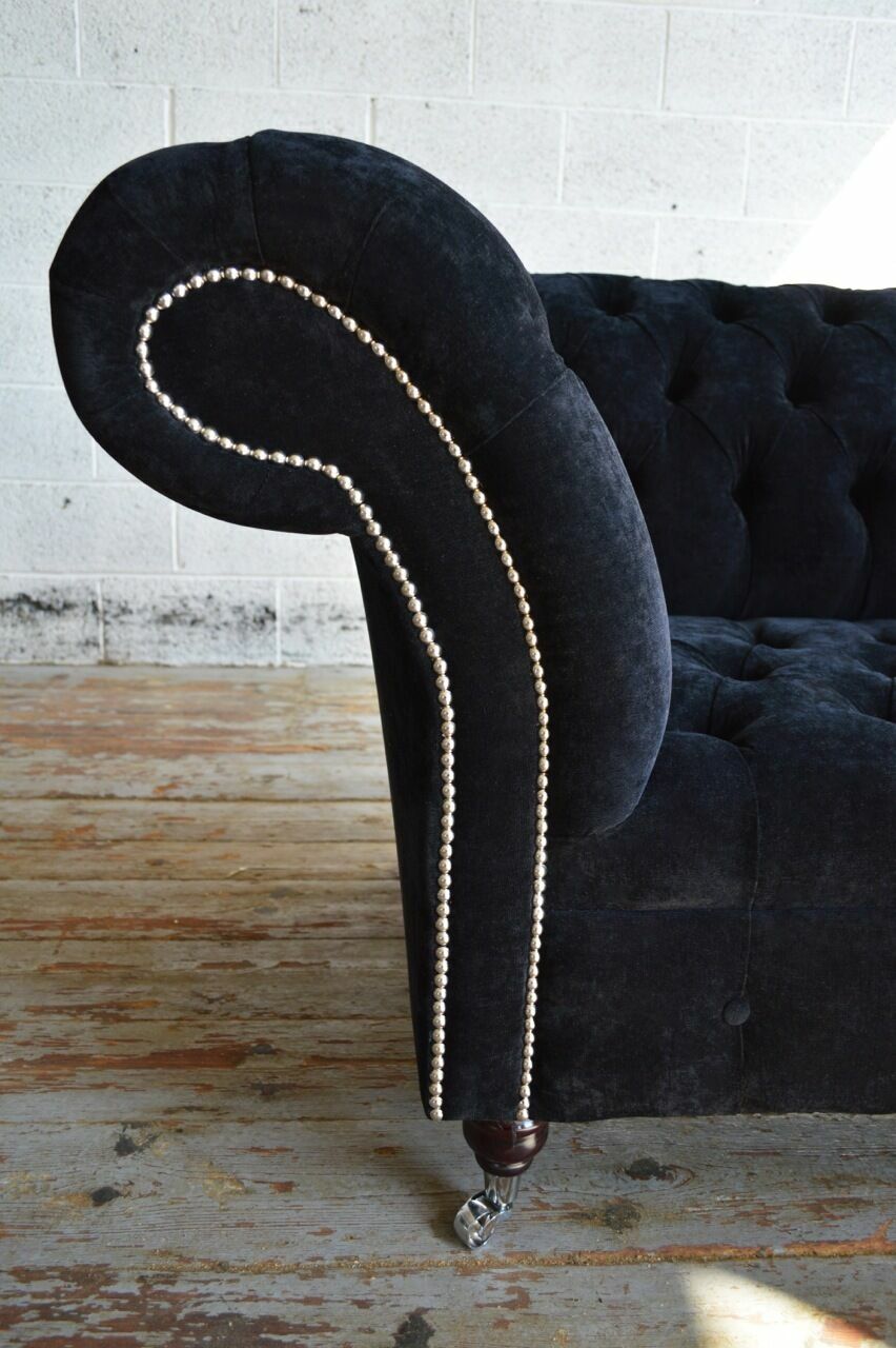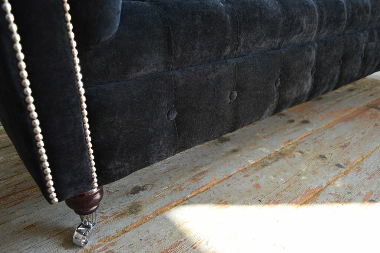 Entdecken Sie das luxuriöse Schwarzer Chesterfield 3-Sitzer Luxus Wohnzimmer Sofa! Dieses elegante Möbelstück bietet nicht nur höchsten Komfort, sondern auch die Möglichkeit, es ganz nach Ihren Wünschen anzupassen. Mit einer Länge von ca. 225 cm, einer Höhe von ca. 79 cm und einer Tiefe von ca. 98 cm bietet dieses Sofa ausreichend Platz zum Entspannen. Die Sitztiefe beträgt ca. 64 cm und die Sitzhöhe ca. 42 cm. Wählen Sie aus einer Vielzahl von Farben, darunter Braun, Grün, Schwarz, Blau, Rot, und vielen mehr. Zudem stehen verschiedene Materialoptionen zur Verfügung, wie Samt, Velours, Kunstleder oder sogar echtes Leder. Lassen Sie sich von Premium Kunstleder/Stoff oder Premium Echtleder*** begeistern! Das Sofa verfügt über ein robustes Unterfeder aus Federkern und ein Innengestell aus echtem Holz, was für Stabilität und Langlebigkeit sorgt. Optional können Sie das Sofa mit Swarovski Kristallsteinen veredeln lassen, um ihm eine extra luxuriöse Note zu verleihen. Erleben Sie den Luxus und den Komfort des Schwarzer Chesterfield 3-Sitzer Luxus Wohnzimmer Sofas und gestalten Sie Ihr Traumsofa ganz nach Ihren Vorstellungen!