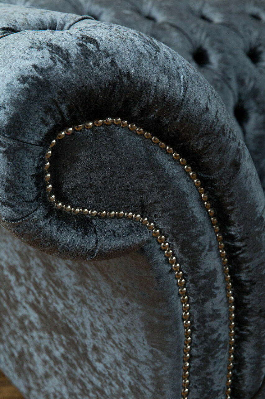 Wohnzimmer Chesterfield Sofa Couch Design Textil Couchen Sofas Dreisitzer Grau