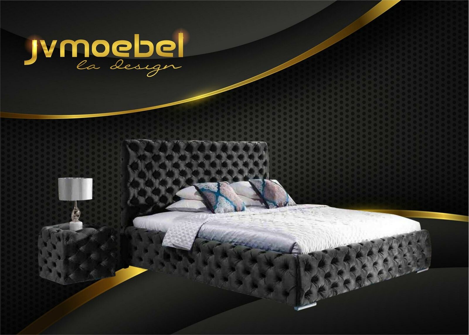 Doppelbett Schlafzimmer Samt Betten Chesterfield Bettgestell Nachttisch 3tlg Set