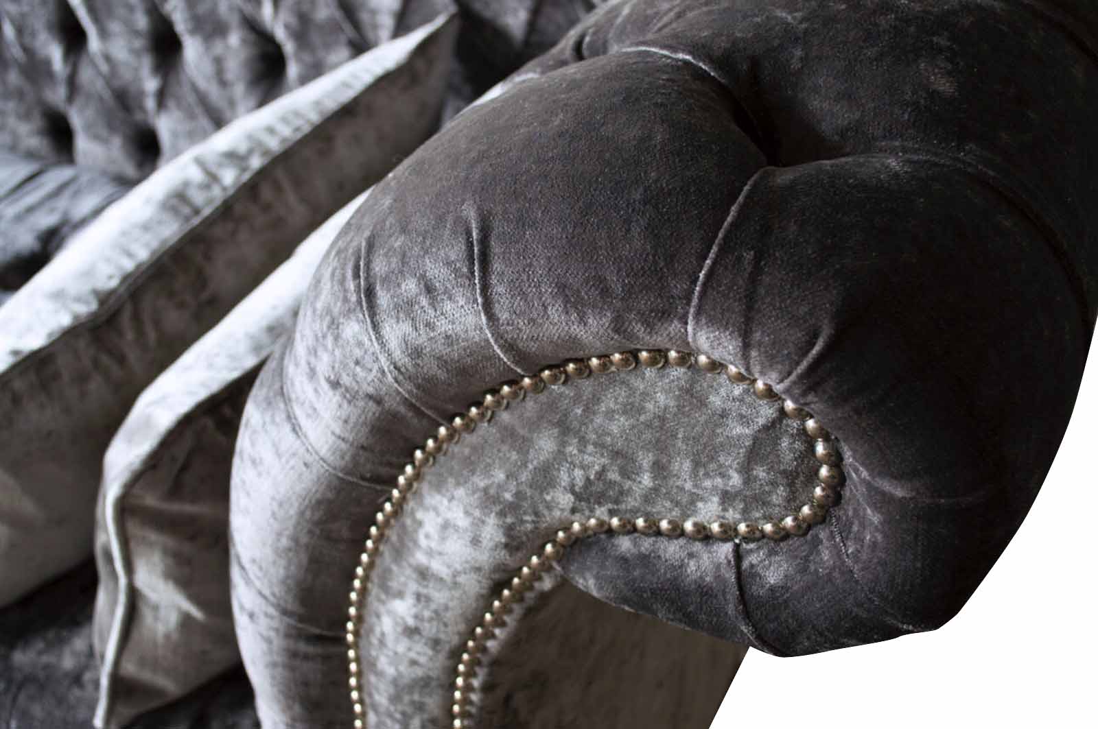 Ein luxuriöses, klassisches Sofa im Chesterfield-Stil in einem satten Silberton