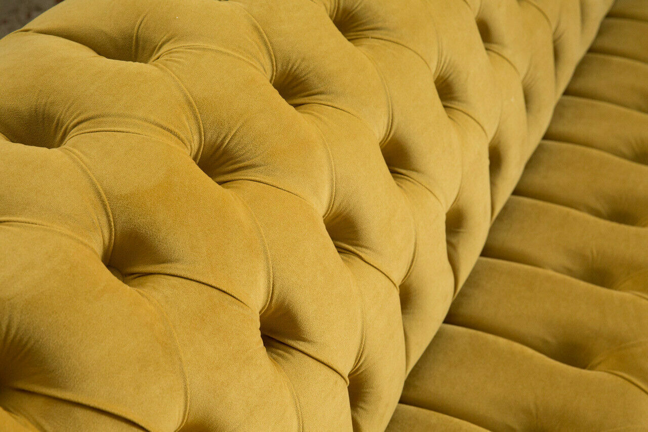 Sofa Sofa Polster Chesterfield Textil Sofas Design Luxus Stoffsofas 4Sitzer Gelb