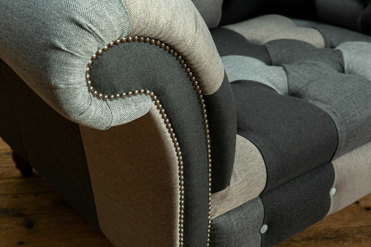 Entspannen Sie stilvoll in unserem grau-blauen Chesterfield Sessel, dem Luxus Einsitzer Designer Möbelstück! Mit einer Länge von ca. 150 cm und einer Höhe von ca. 79 cm bietet dieser Sessel höchsten Komfort und ein elegantes Design. Dank der freien Farbwahl können Sie Ihren individuellen Stil zum Ausdruck bringen. Hergestellt aus hochwertigem Textilmaterial können Sie optional im Shop zusätzliche Funktionen wie eine Bettfunktion mit Matratze hinzufügen. Wählen Sie aus verschiedenen Materialoptionen wie Premium Kunstleder, Echtleder, Samt Stoff oder Fleckenabweisendem Stoff, um Ihren Sessel nach Ihren persönlichen Vorlieben anzupassen. Das Innengestell aus echtem Holz und der Federkern sorgen für Stabilität und Bequemlichkeit. Optional sind auch weitere Größen wie 2-Sitzer, 3-Sitzer oder sogar 5-Sitzer erhältlich. Für ein exklusives Finish können Sie zwischen Kristallsteinen oder echten Swarovski Kristallsteinen für die Verzierung wählen. Erleben Sie den Luxus und die Eleganz des grau-blauen Chesterfield Sessels - gönnen Sie sich ein Stück modernes Design in höchster Qualität!