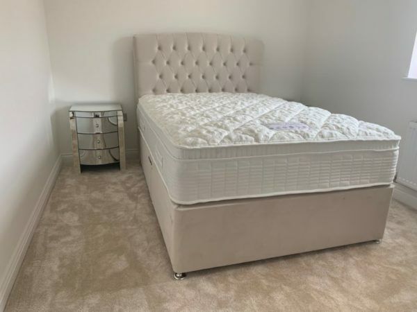 Großes beiges Chesterfield Doppelbett Luxus Moderne Betten