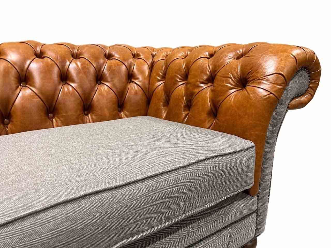 Klassische 4-Sitzer Chesterfield Couch in Braun - Hochwertiges Textil und Edles Lederdesign