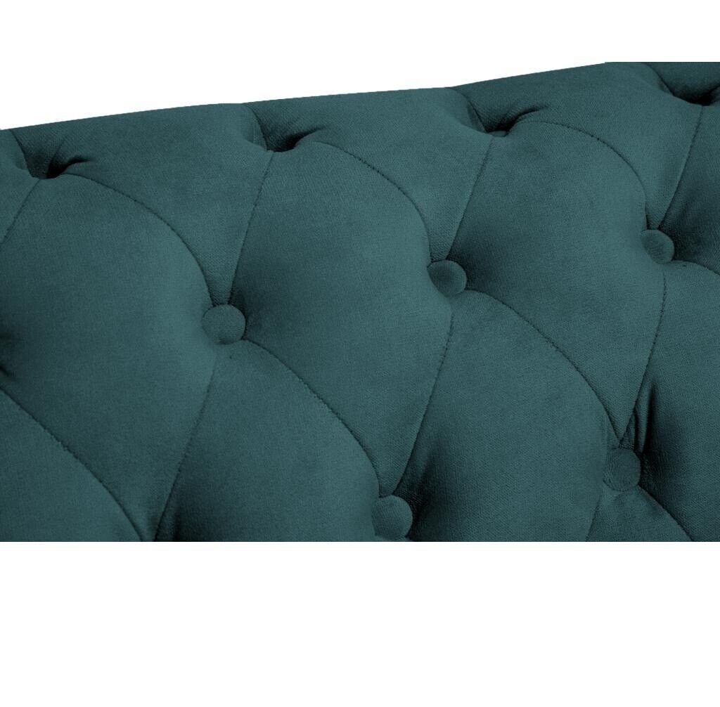 Tauchen Sie ein in den Luxus mit unserem klassischen Chesterfield Möbel Dreisitzer Couch Textil Sofa. Mit einem edlen Design und handgefertigt aus hochwertigen Materialien, wird dieses Sofa Ihr Wohnzimmer in eine elegante Wohlfühloase verwandeln. Die Maße dieses bezaubernden Sofas sind ca. 203 cm in der Länge, 72 cm in der Höhe und 86 cm in der Tiefe. Mit einer komfortablen Sitztiefe von ca. 54 cm und einer Sitzhöhe von ca. 50 cm, lädt dieses Chesterfield Sofa zum Entspannen ein. Sie haben die Freiheit, die Farbe nach Ihrem eigenen Stil auszuwählen, sei es Braun, Grün, Schwarz, Blau oder einer der vielen anderen verfügbaren Farben. Darüber hinaus können Sie zwischen verschiedenen Materialien wie Samt, Velours, Kunstleder oder Leder wählen. Das Innengestell aus echtem Holz und die Federkernunterfederung sorgen für Stabilität und Komfort, während Sie sich in diesem exquisiten Sofa entspannen. Optional können Sie auch die Unterboden LED Beleuchtung hinzufügen, um eine noch luxuriösere Atmosphäre zu schaffen. Bringen Sie mit unserem Chesterfield Möbel Dreisitzer Couch Sofa Eleganz und Stil in Ihr Zuhause. Bestellen Sie jetzt und genießen Sie Luxus in jedem Detail!