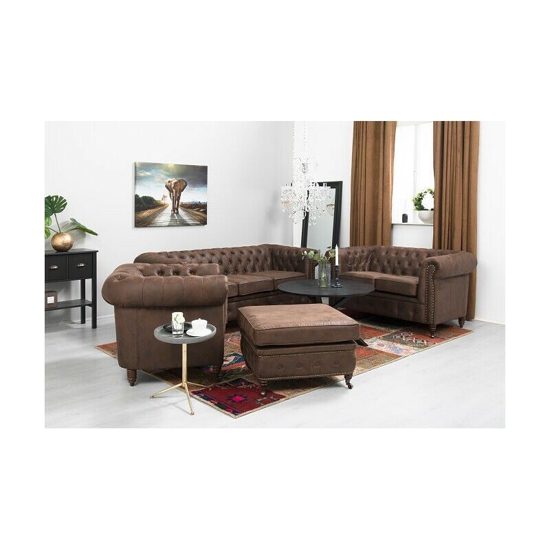 Chesterfield 3+2+1 Sitzer Sofagarnitur + Hocker Couch Sofa Leder Textil Couchen