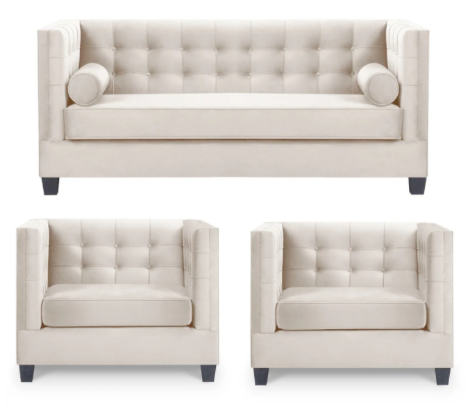 Chesterfield Garnitur Gruppe Sessel Beige Stoff Couchen Möbel Sofagarnitur Neu