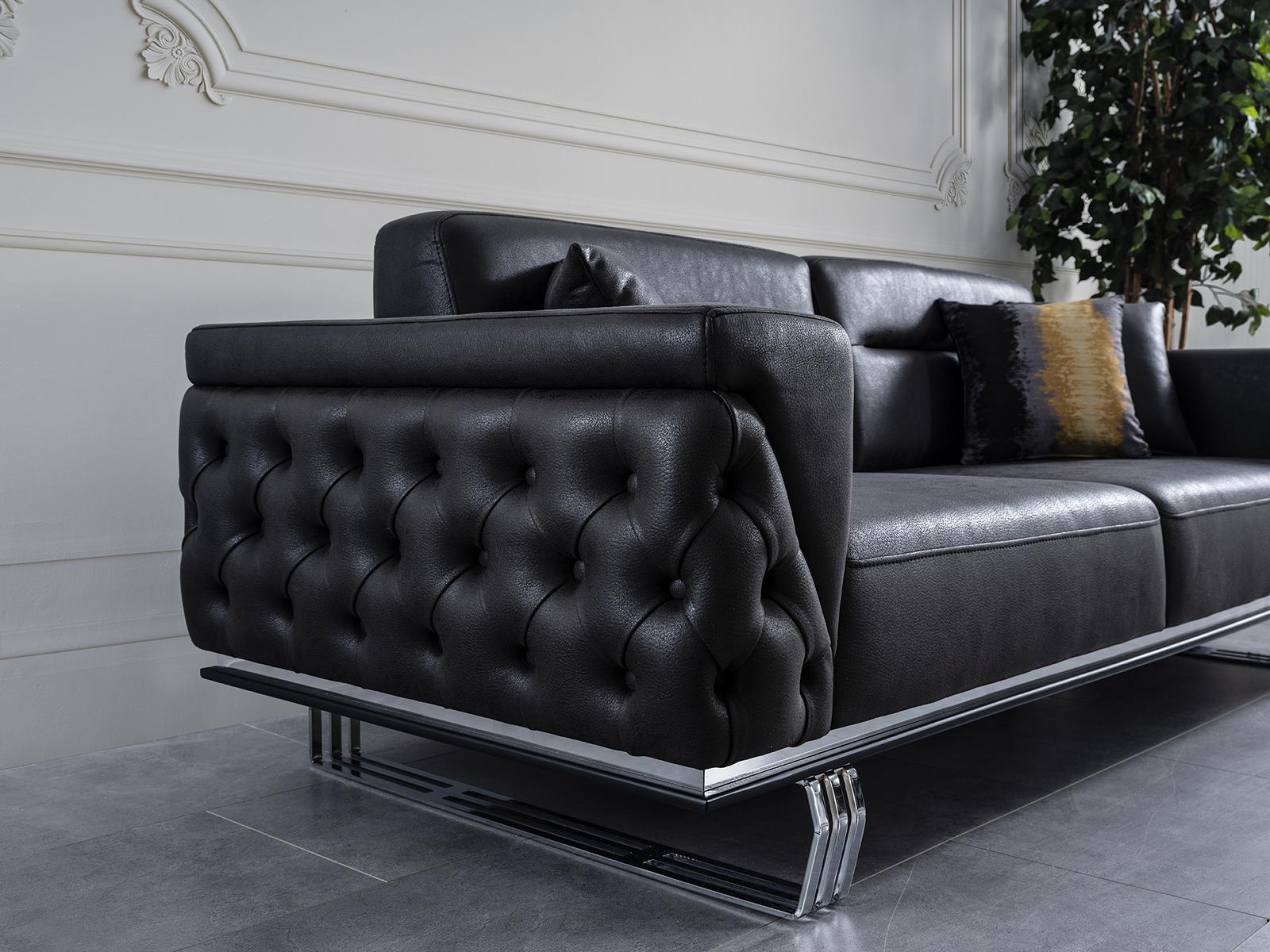 Sofagarnitur Komplette Sofa 41 Sitz Sessel Kunstleder Schwarz Set 2tlg
