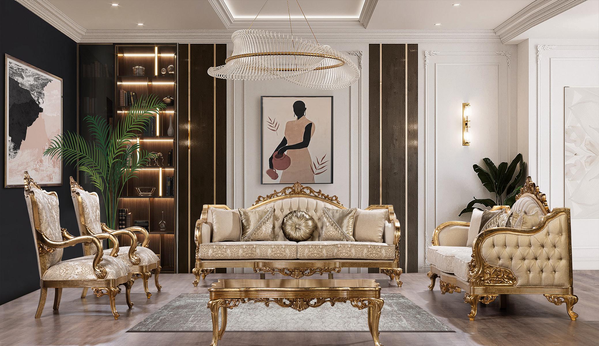 Sofa Set Sofagarnitur 4tlg. Couchtisch Luxus Wohnzimmer Klassiker Designer