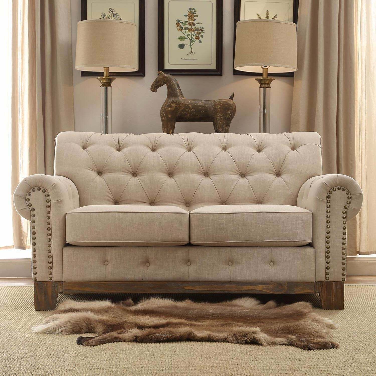 Chesterfield 2 Sitz Klassische Luxus Natur Holz Gestell Sofa Textil Leder Couch