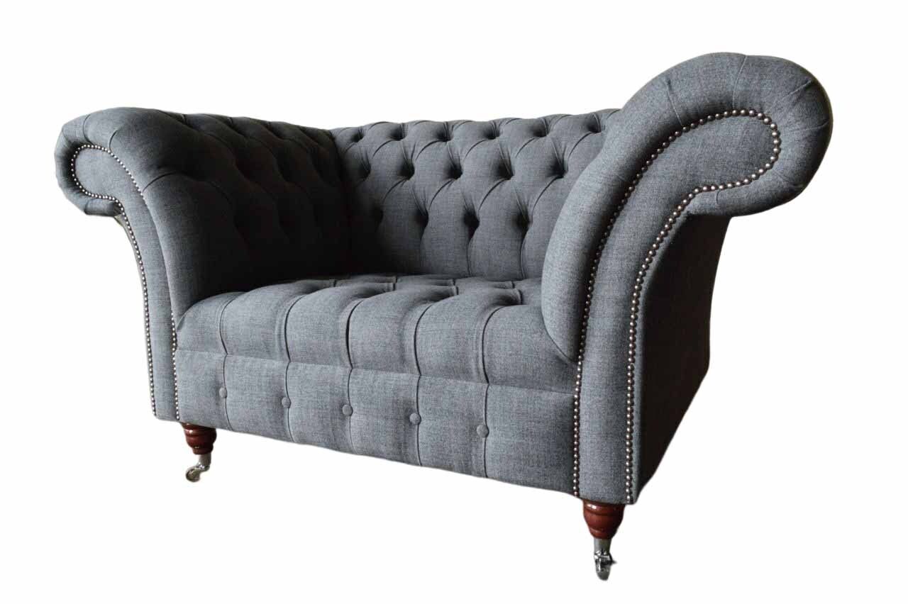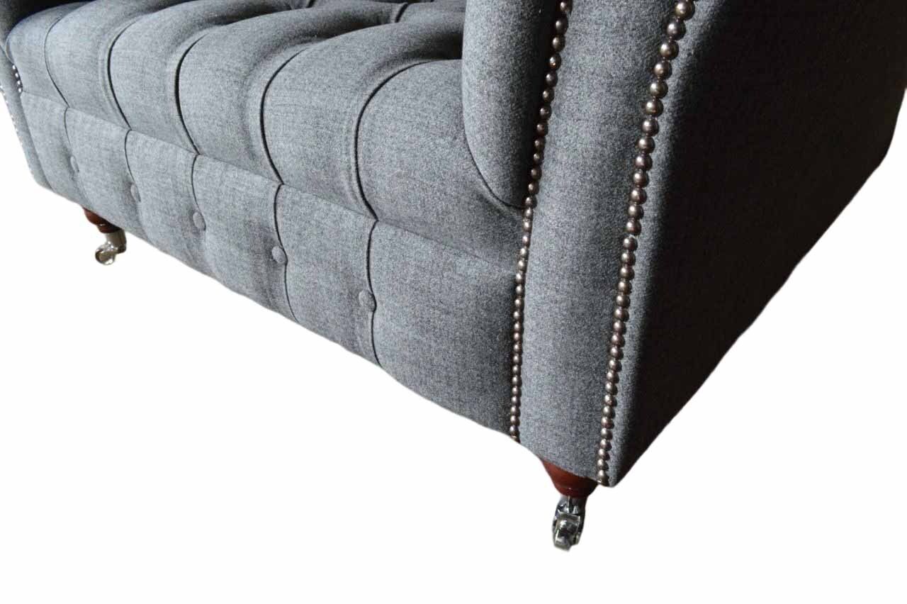 Chesterfield Design Sessel Grau Polster Luxus Textil Couchen 1 Sitzer