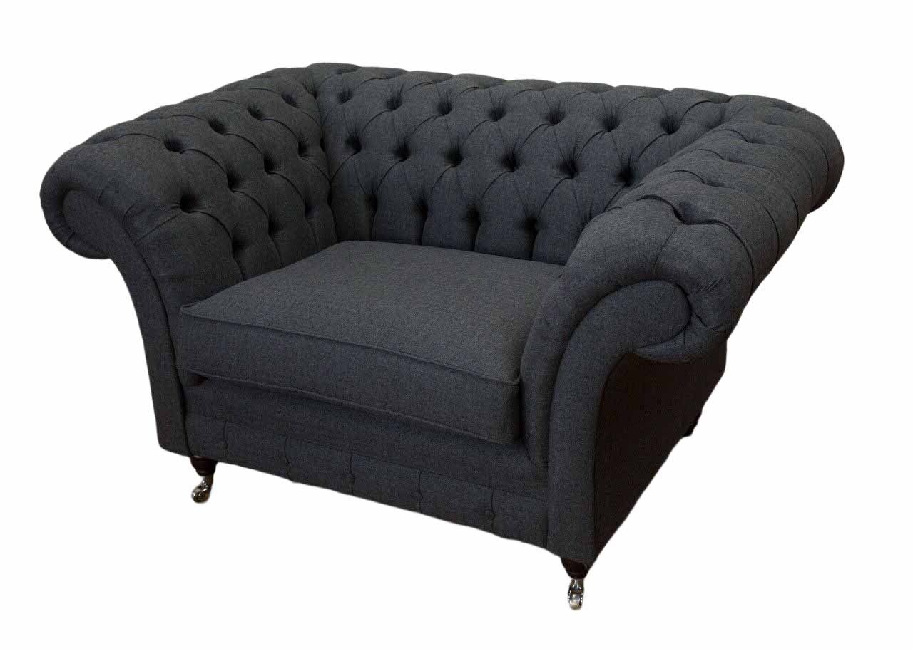 Grauer Chesterfield Sessel 1.5 Sitzer Sofa Couch Polster Textil Grau Sessel