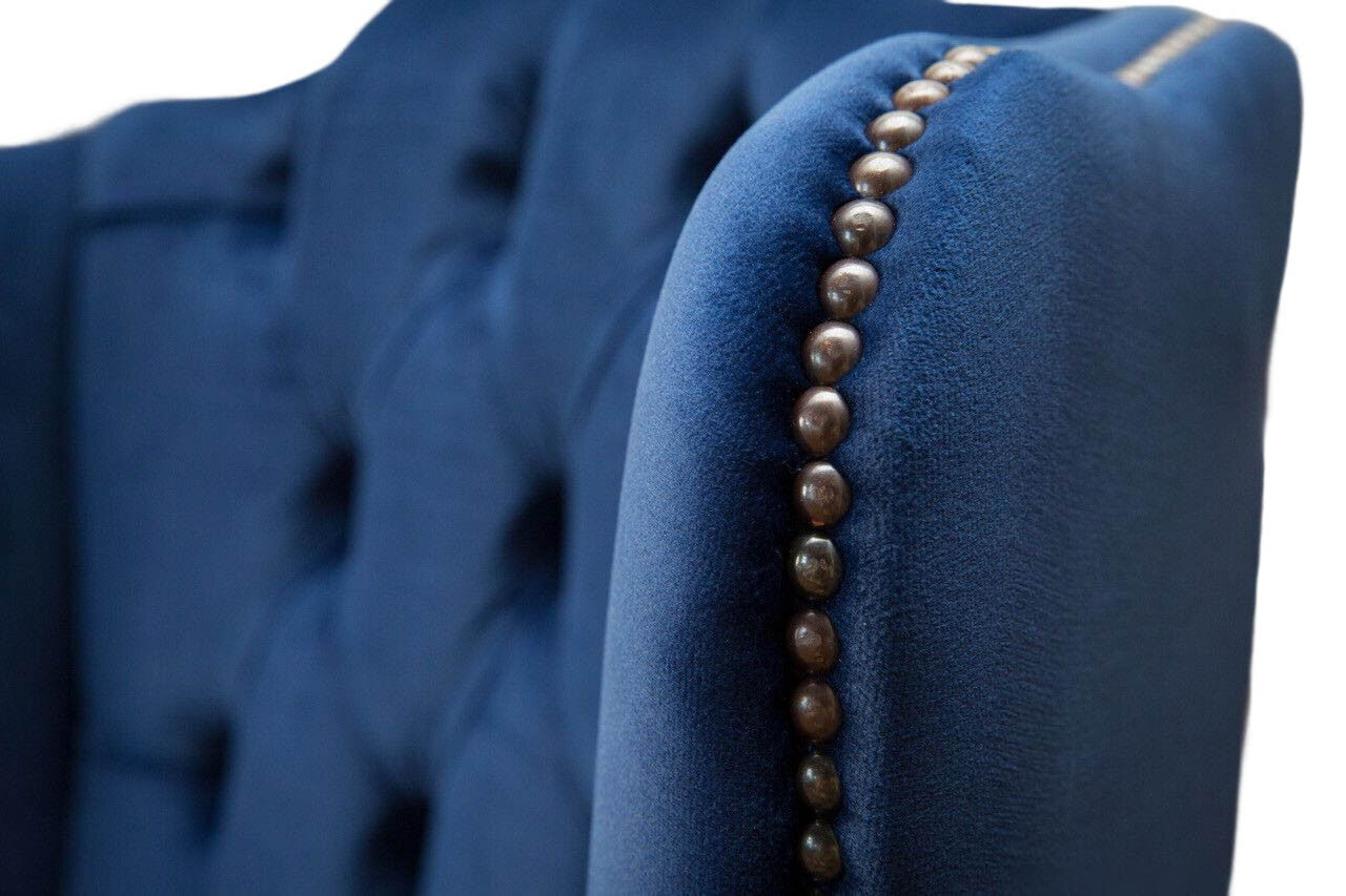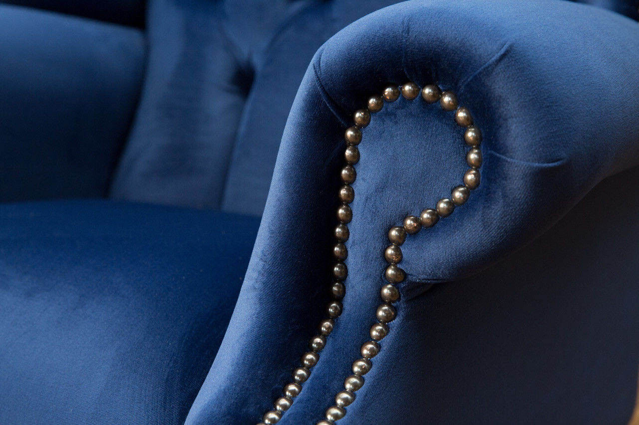 Sessel Chesterfield Couch Textil Lounge Polster Blau Luxus Ohrensessel