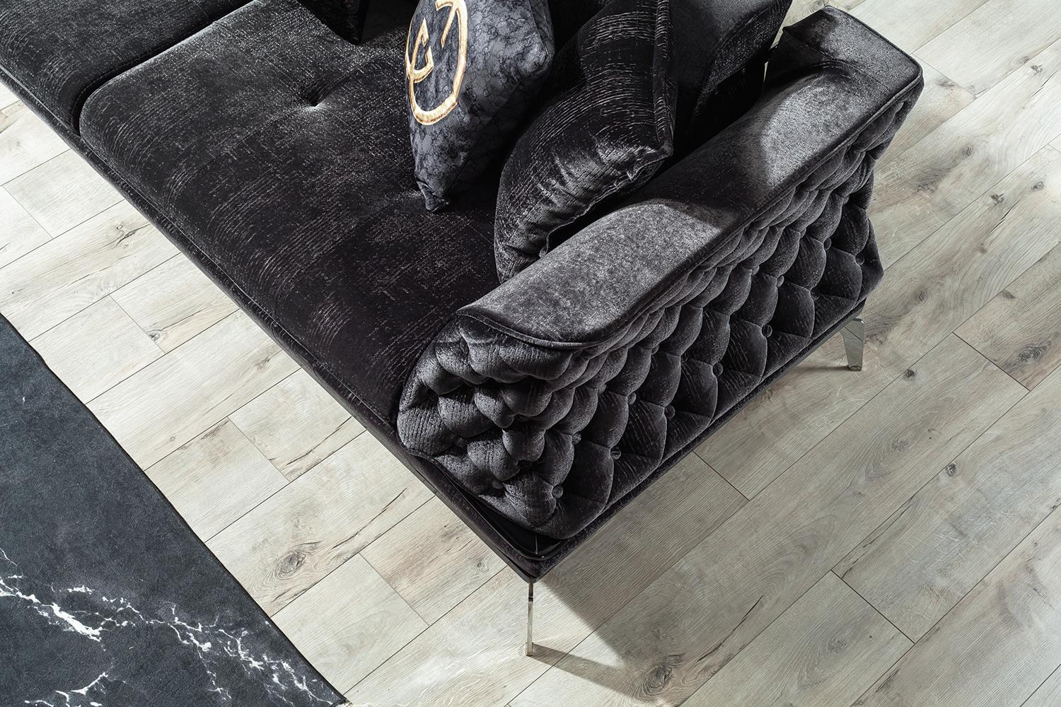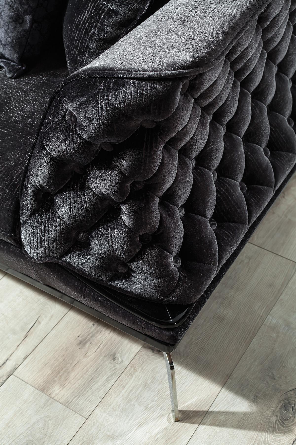Schwarze Couch Sofa Garnitur 3+1 Sitz Chesterfield Wohnzimmer Polster
