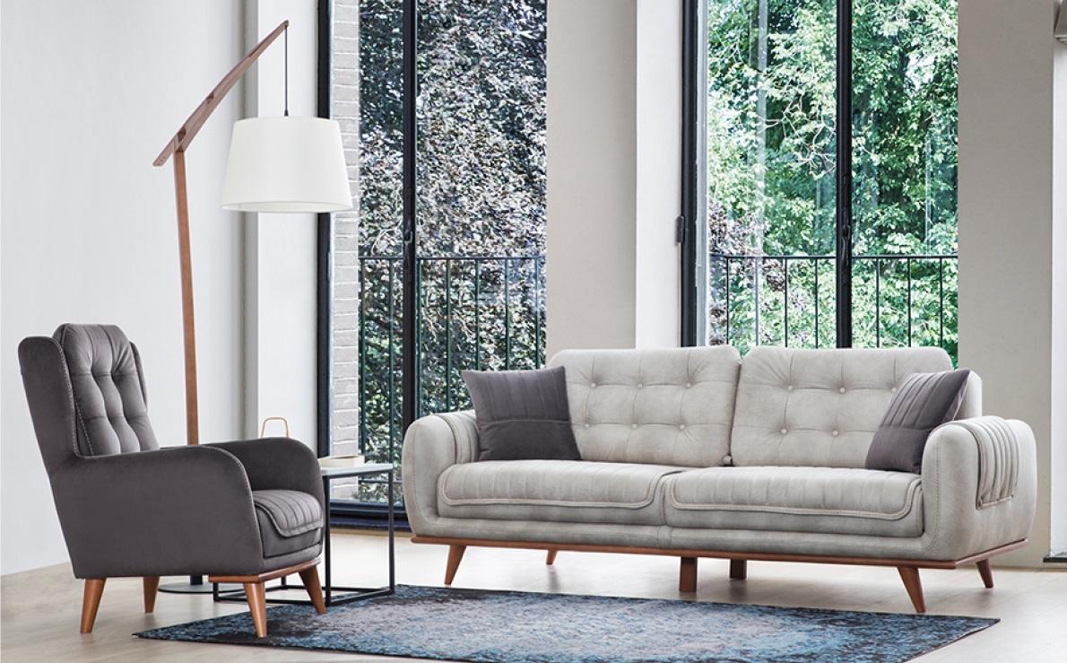 Moderne Möbel, Graues Sofa, Sitzgruppe, Textilgarnitur, Zeitgemäßes Design
