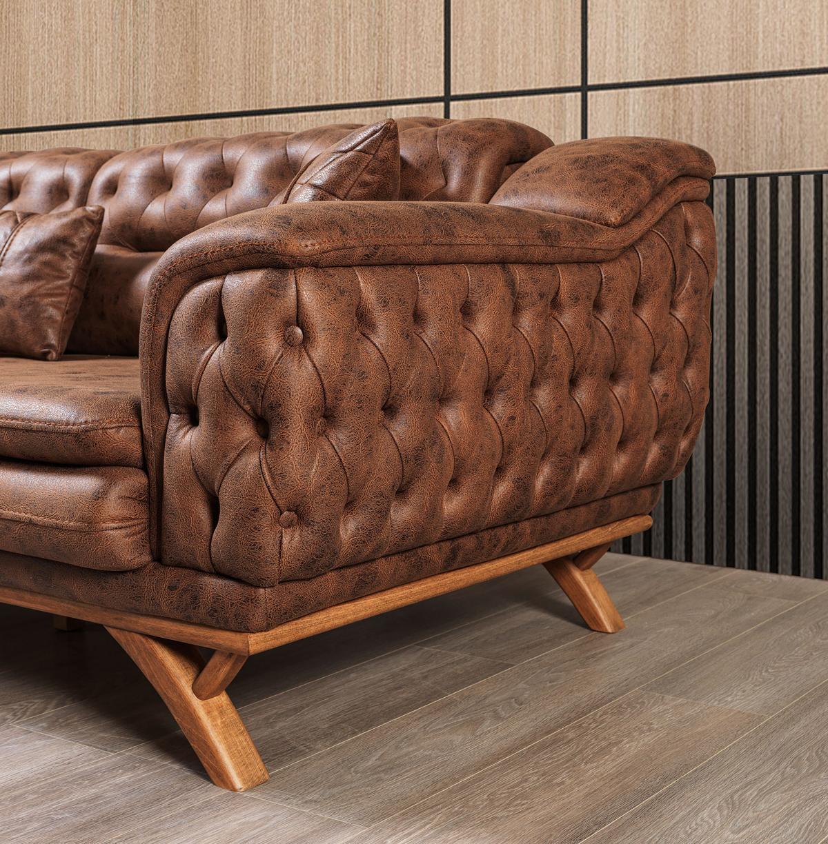Sofa 3 Sitzer Chesterfield Stoff Couch Polster Sofas Kunstleder Couchen