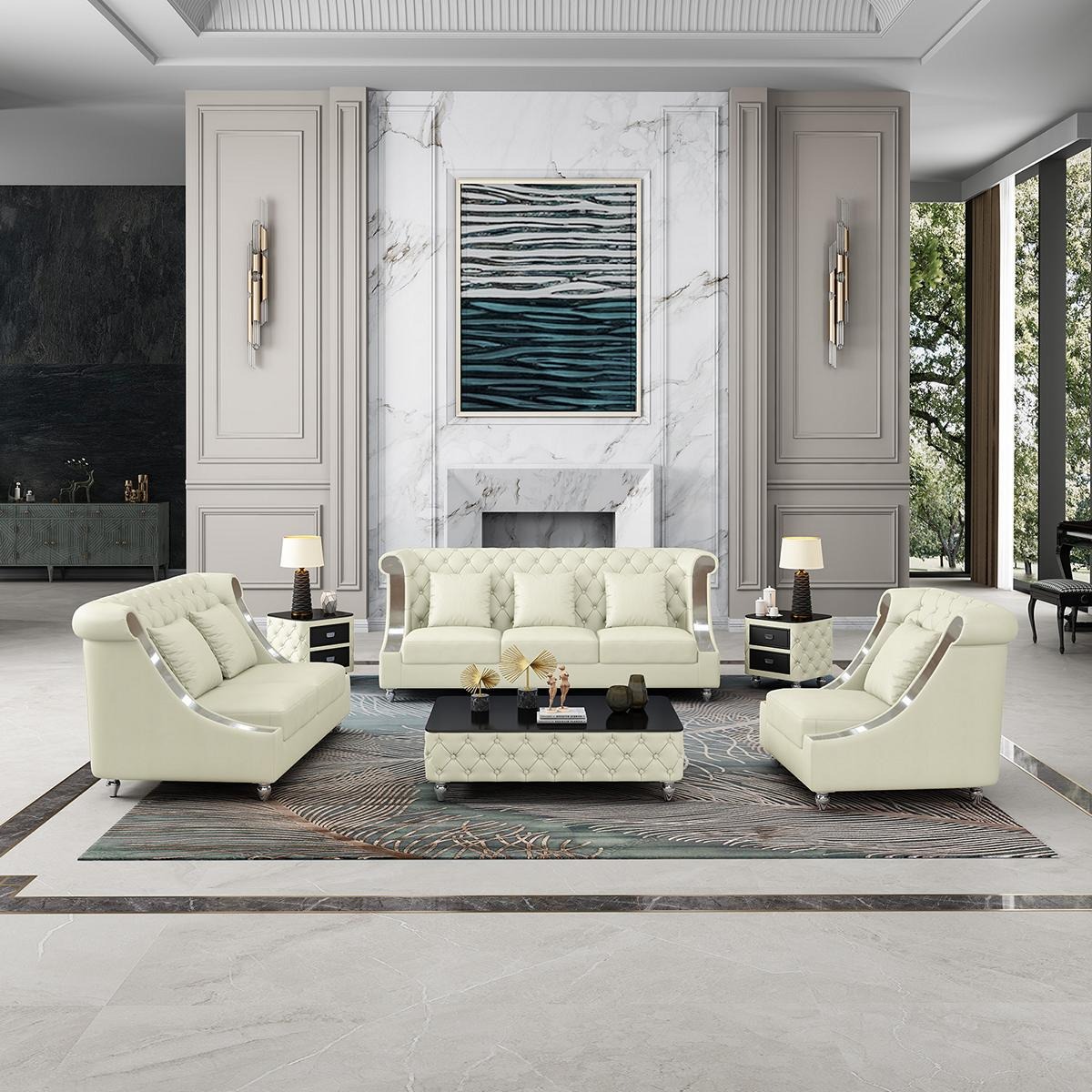 Sofagarnitur Chesterfield, 3+2+1, niedriger Preis, günstig, Leder, moderner Stil