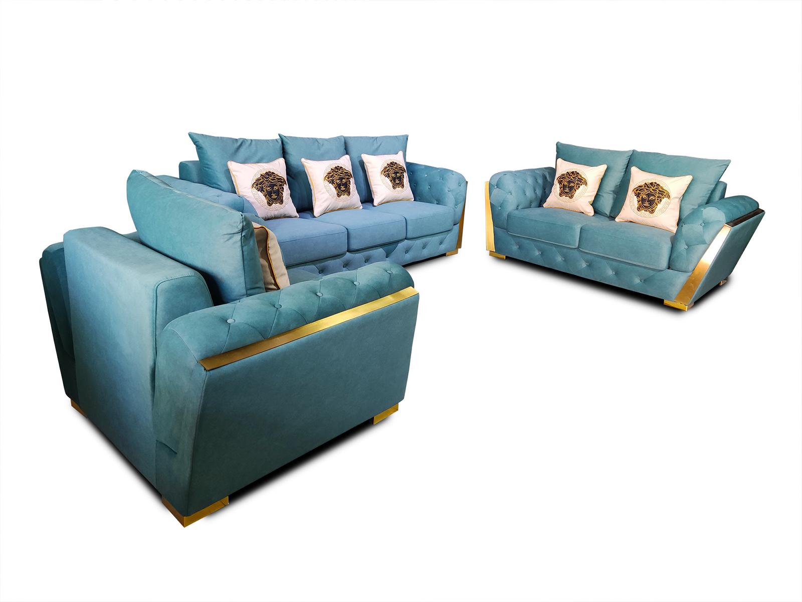Sofagarnitur Chesterfield Couch Set 3+2+1 Möbel Stoff Sofa Couchen 3tlg.