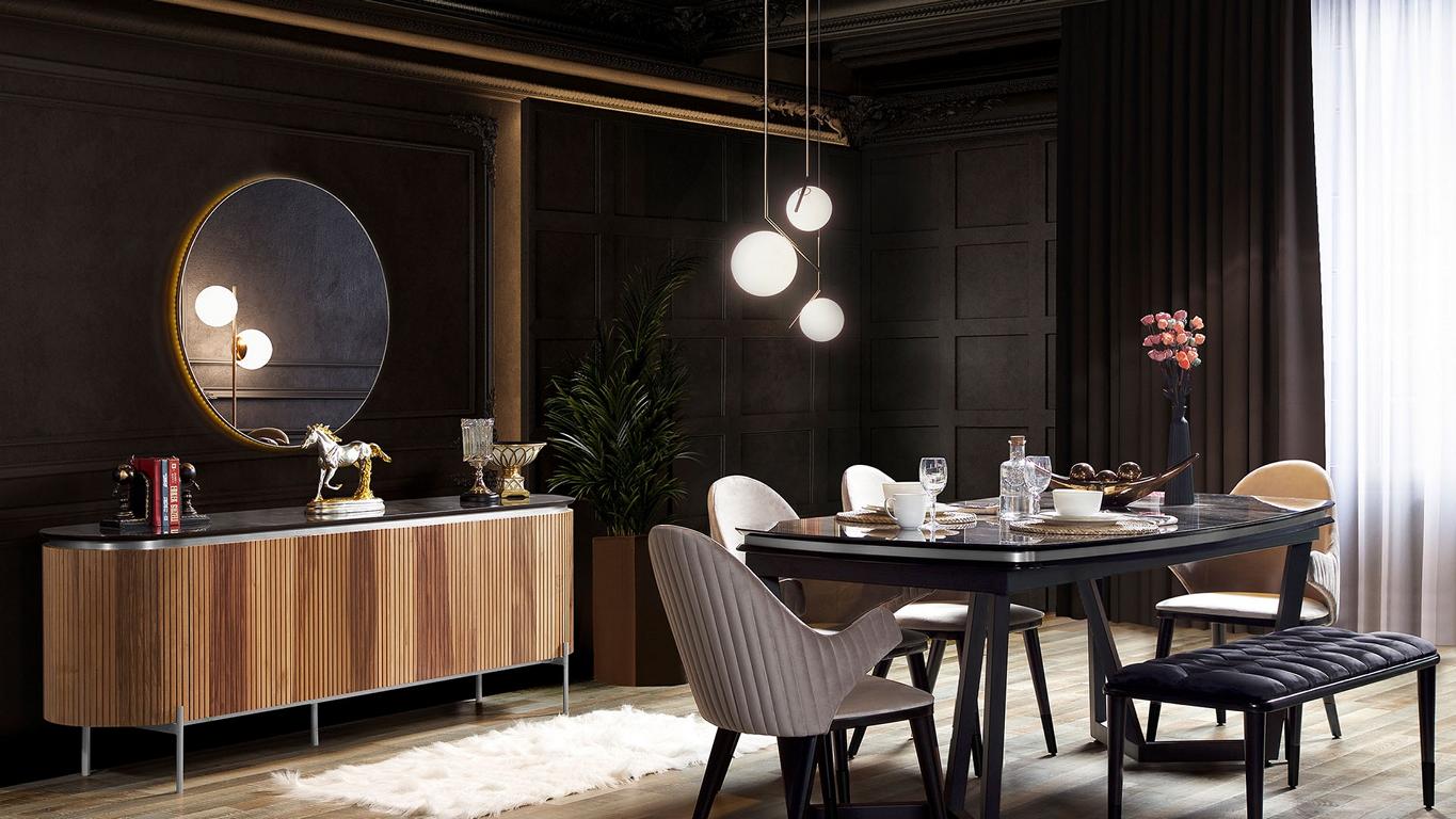 Stilvoll 8tlg.Esszimmer Set Esstisch 4x Stühle Anrichte Spiegel Bank neu