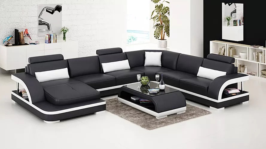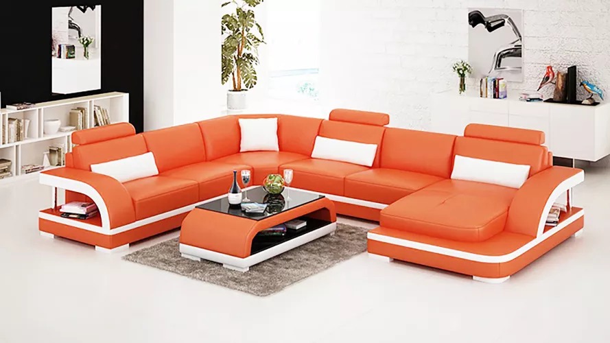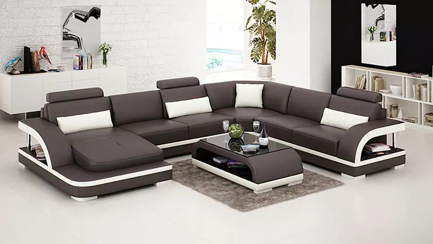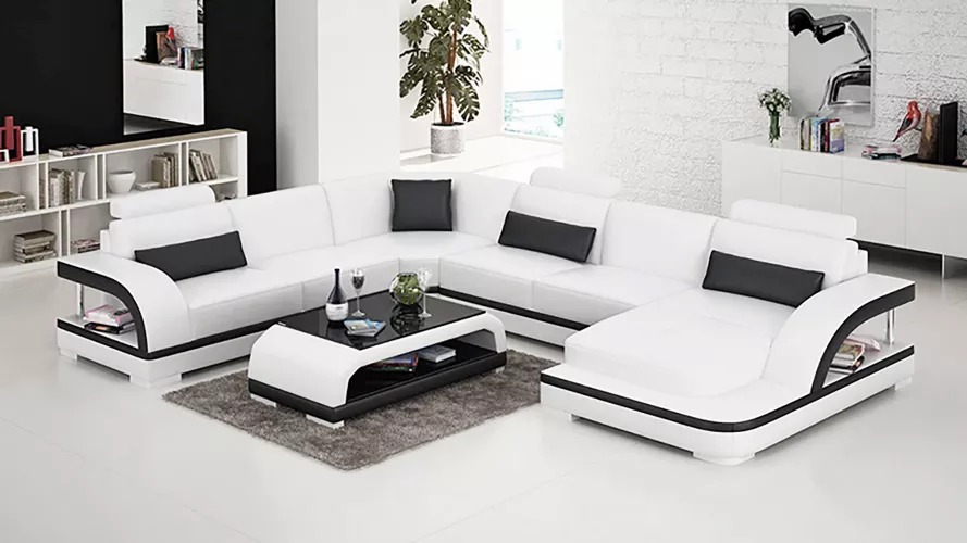 Kaufen Sie ein Ecksofa in U-Form, günstig, mit Lederpolsterung, Sofa für das Wohnzimmer