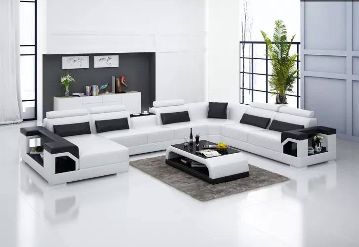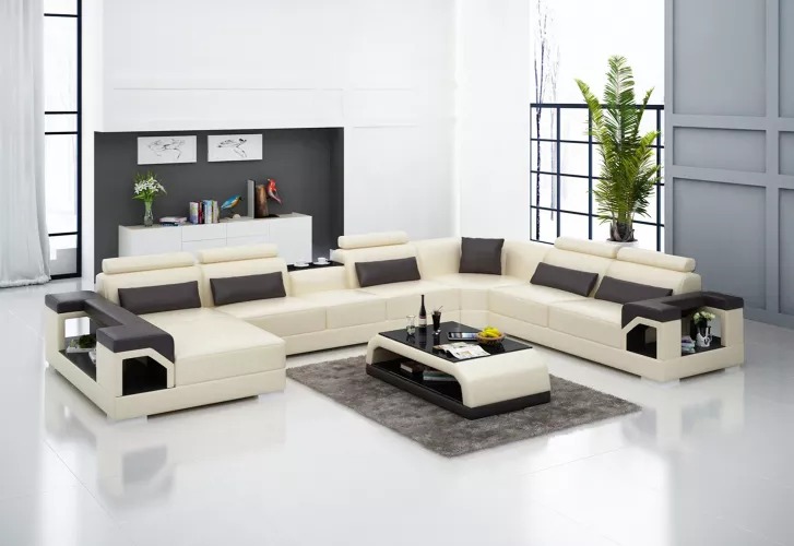 Kaufen Sie ein Ecksofa in U-Form, günstig, mit Lederpolsterung, Sofa für das Wohnzimmer