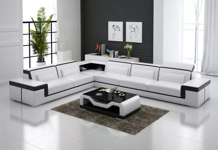 Design Wohnzimmer Ecksofa Möbel Eckcouch Lederpolster Couch Sofa L Form + Tisch