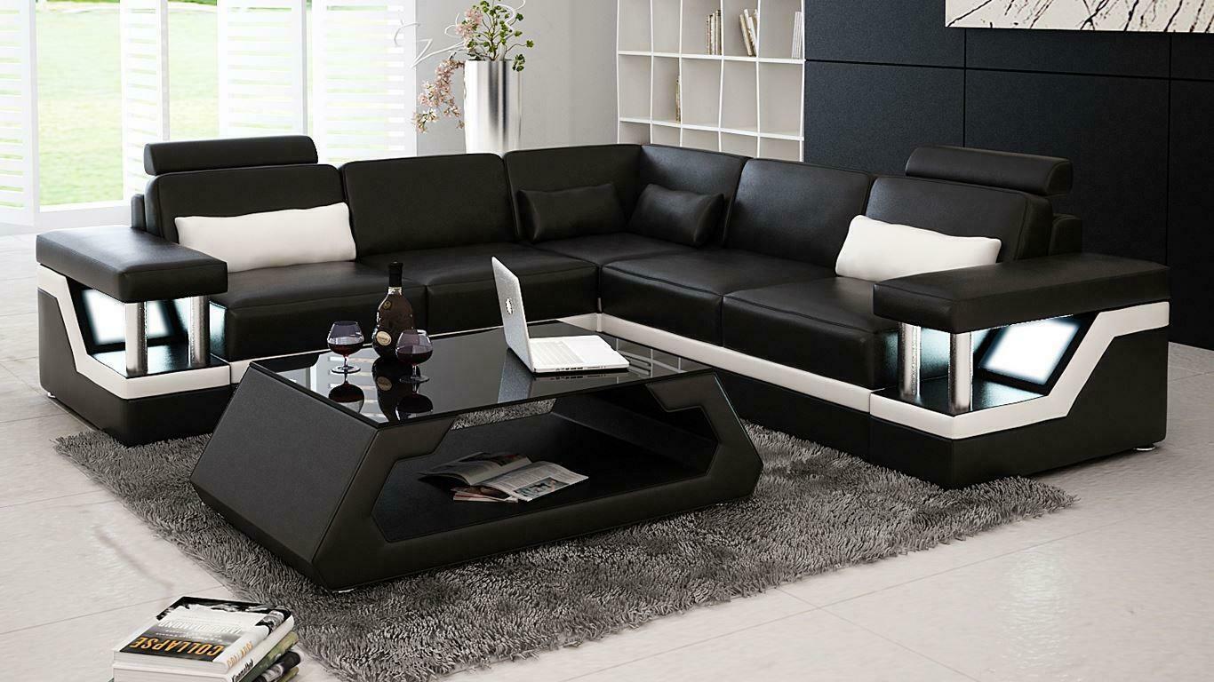 Designer Sofa Couch Ecksofa Leder Textil Polster Garnitur Wohnlandschaft