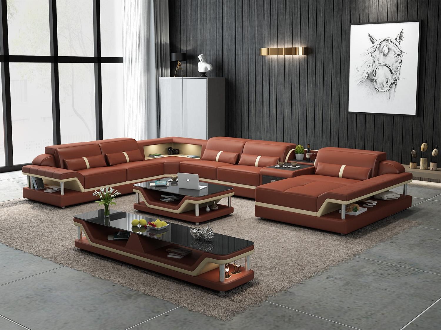 Möbelset, Ecksofa und Tisch, hochwertige Materialien, moderner Stil