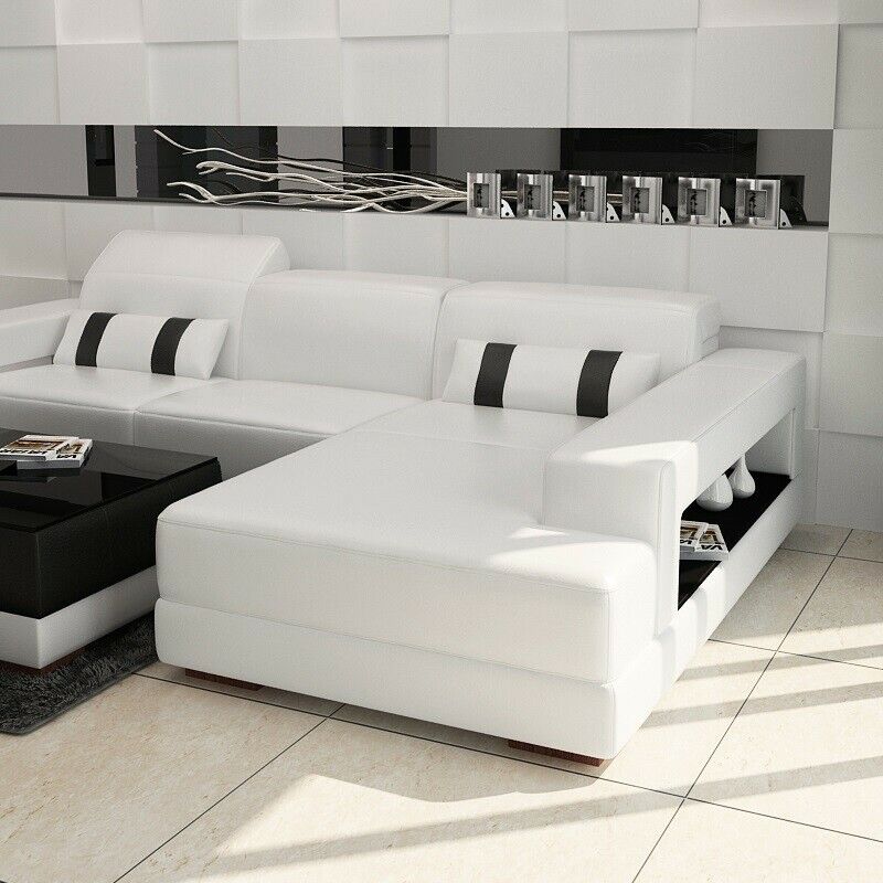 Ecksofa Couch Polster Wohnlandschaft Leder Eck Sofas Garnitur L Form mit Hocker