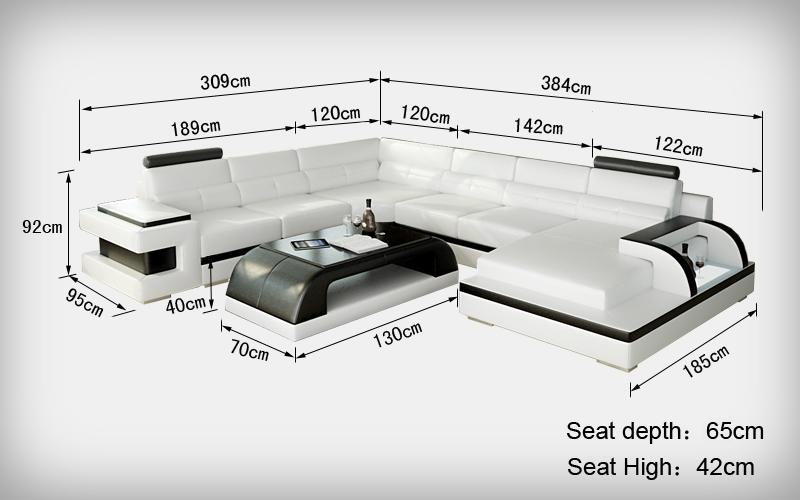 Bringen Sie Stil und Komfort in Ihr Zuhause mit der Ecksofa Couch Sofa LED Wohnlandschaft Polstergarnitur mit USB-Beleuchtung! Diese weiche Eckcouch in U-Form ist ein absolutes Highlight. Mit Maßen von ca. 309 x 384 x 185 cm oder ca. 185 x 384 x 309 cm bietet sie genügend Platz für gemütliche Stunden. Die Eckcouch ist ca. 92 cm hoch, die Sitzhöhe beträgt ca. 42 cm und die Tiefe liegt bei ca. 95 cm. Das besondere Extra: 3 USB-Anschlüsse sind inklusive! Sie haben die freie Farbwahl und die Möglichkeit, zwischen verschiedenen Materialien wie Premium Lederfaserstoff, echtem Leder, Textilstoff oder Vollleder zu wählen. Optional können Sie die Eckcouch im Shop mit Extras wie einer elektrischen Relax-Fußstütze, einem Soundsystem über Bluetooth oder Unterbodenbeleuchtung mit Farbwechsel tunen. Das Innengestell aus echtem Holz und das hochwertige Rindsleder aus Italien sorgen für Langlebigkeit und einen Hauch von Luxus. Gestalten Sie Ihr Wohnzimmer nach Ihren Wünschen und schaffen Sie eine gemütliche Atmosphäre mit dieser modernen Ecksofa Couch!