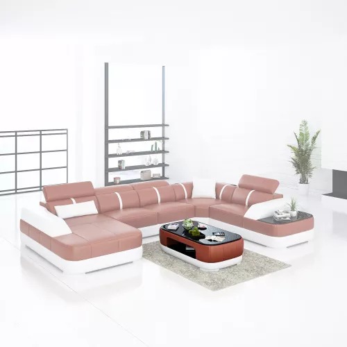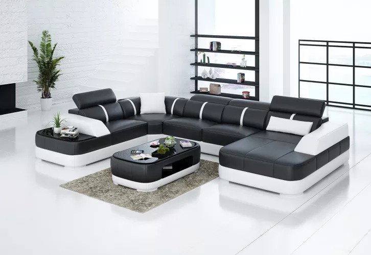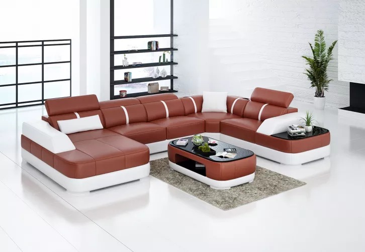 Kaufen Sie ein Ecksofa in U-Form, günstig, mit Lederpolsterung, Sofa für das Wohnzimmer