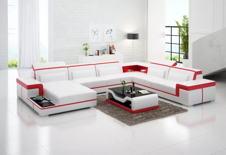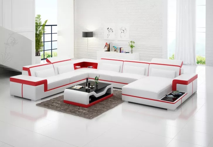 Kaufen Sie ein Ecksofa in U-Form, günstig, mit Lederpolsterung, Sofa für das Wohnzimmer