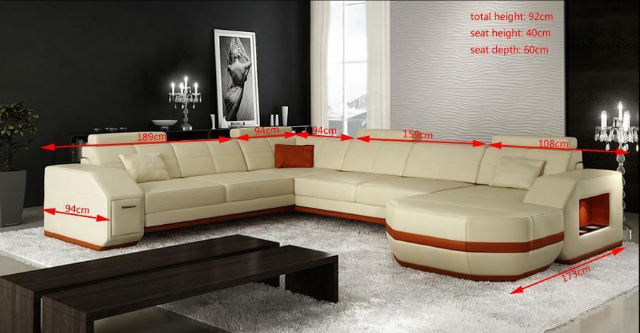 Erweitern Sie Ihr Wohnzimmer mit dieser eleganten Ecksofa Ledersofa Big XXL U-Form Wohnlandschaft! Das Sofa besticht durch seine großzügigen Maße von ca. 173 x 355 x 283 cm oder 283 x 355 x 173 cm, perfekt für gemütliche Abende mit der Familie oder Freunden. Mit einer Sitzhöhe von ca. 40 cm und einer Sitztiefe von ca. 60 cm bietet dieses Sofa optimalen Komfort. Sie haben die freie Farbwahl aus einer Vielzahl von Farben wie Zyan, Amethyst, Kirschrot, Schwarz und vielen mehr. Außerdem können Sie zwischen verschiedenen Materialien wählen, darunter Premium Lederfaserstoff (70% Leder / 30% Polyester) oder echtem italienischem Rindsleder. Das Innengestell aus echtem Holz sorgt für Stabilität und Langlebigkeit. Profitieren Sie von unserem optionalen Materialangebot, um Ihre Traumcouch individuell anzupassen. Stöbern Sie jetzt durch unser Sortiment und machen Sie dieses Ecksofa zu Ihrem neuen Lieblingsmöbelstück!