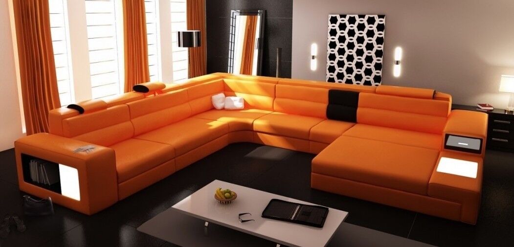 Ecksofa Sofa Couch Polster Design Garnitur Textil Leder Wohnlandschaft
