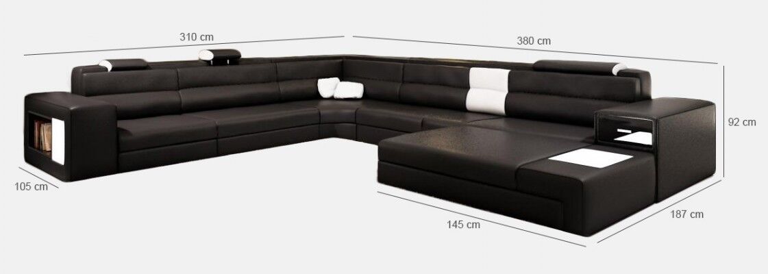 Erleben Sie den ultimativen Komfort mit unserer modernen Ecksofa Couch Polster Design Garnitur aus Premium-Kunstleder! Diese Wohnlandschaft bietet nicht nur ein stilvolles Design, sondern auch maximale Gemütlichkeit. Mit Maßen von ca. 310 x 380 x 187 cm oder 187 x 380 x 310 cm passt dieses Ecksofa perfekt in Ihr Zuhause. Die Eckcouch hat eine angenehme Sitztiefe von ca. 60 cm und eine bequeme Sitzhöhe von ca. 40 cm. Sie können aus einer Vielzahl von Farben wählen, darunter Zyan, Fuchsia, Kirschrot, Schwarz und viele mehr. Das Premium-Kunstleder sorgt für Langlebigkeit und edle Optik. Gegen einen Aufpreis können Sie auch Premium Echtleder oder Premium Textilstoff aus Italien wählen. Das Innengestell aus echtem Holz und der Unterfeder mit Federkern bieten Stabilität und Komfort. Verwandeln Sie dieses Ecksofa bei Bedarf in ein gemütliches Bett mit der optionalen Bettfunktion (Aufpreis + 349,00 CHF). Genießen Sie Luxus und Qualität in Ihrem Wohnzimmer mit XL Möbel - Fragen Sie uns gerne nach individuellen Anpassungen!