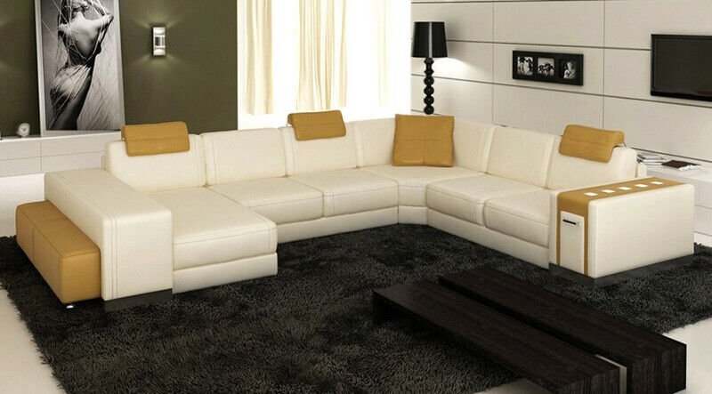Ecksofa Sofa Wohnlandschaft U Form Polster Couch Ledersofa Hocker