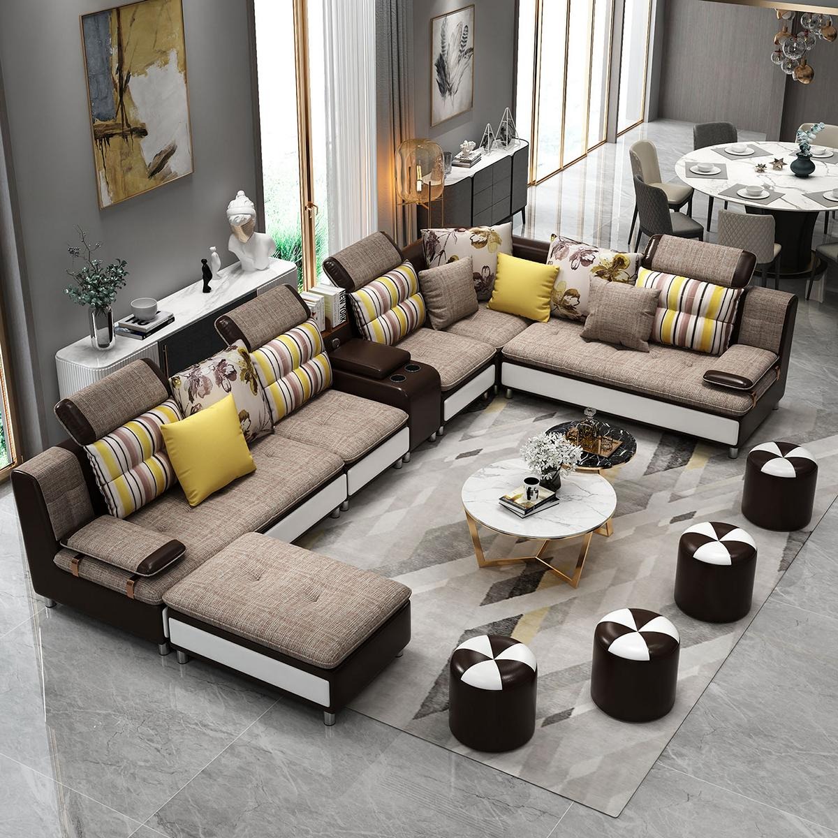 Kaufen Sie ein Ecksofa in U-Form, günstig, mit Lederpolsterung, Sofa für das Wohnzimmer