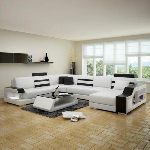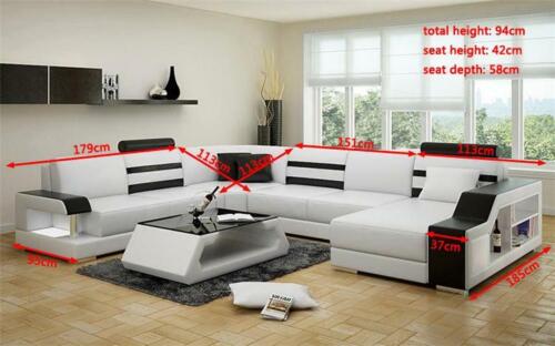 Ecksofa Wohnlandschaft U Form Sofa - Ledersofa Garnitur mit Regal Leder