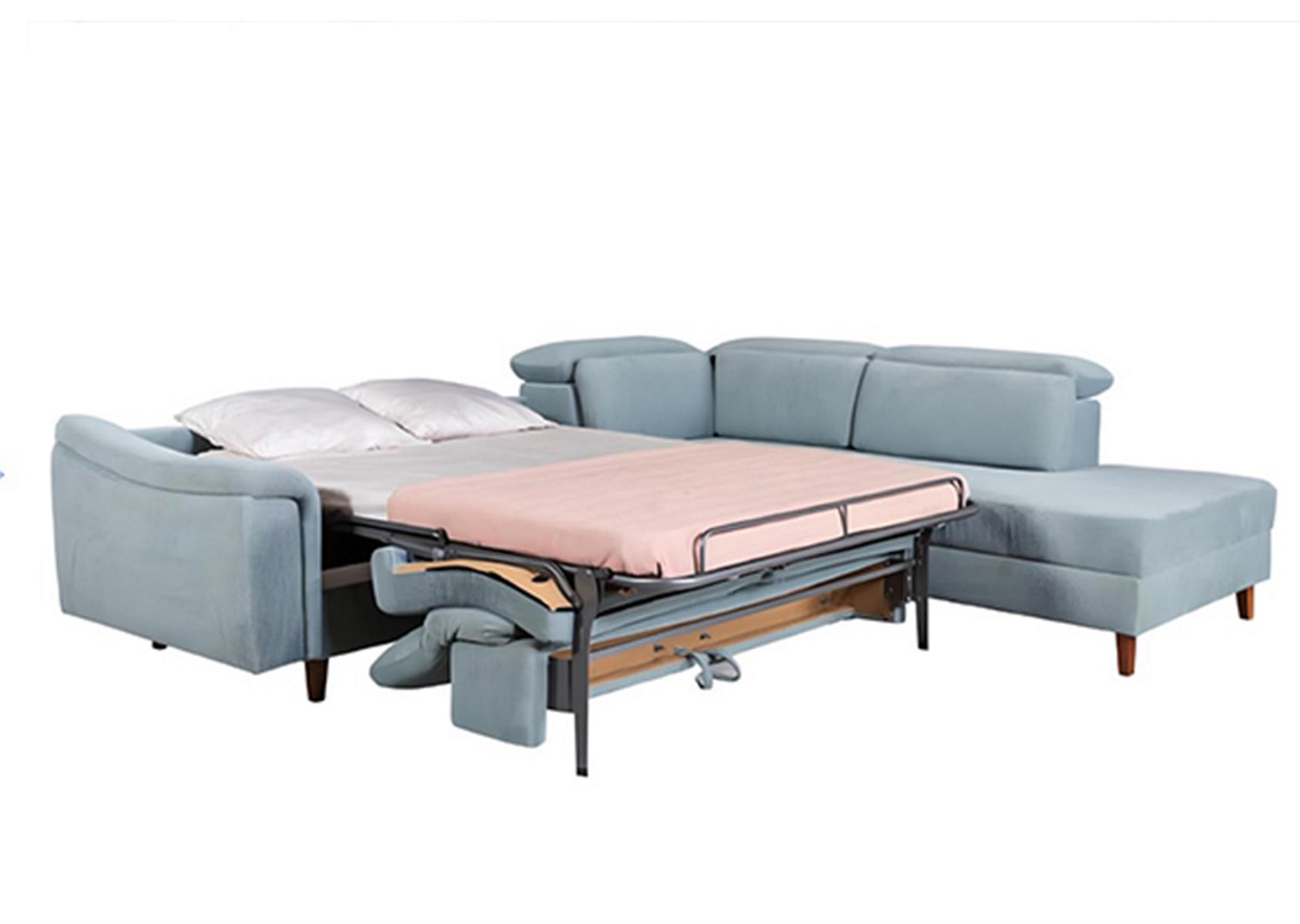 Blaues Ecksofa L-Form Wohnzimmer Polster Couchen Designer Holzgestell