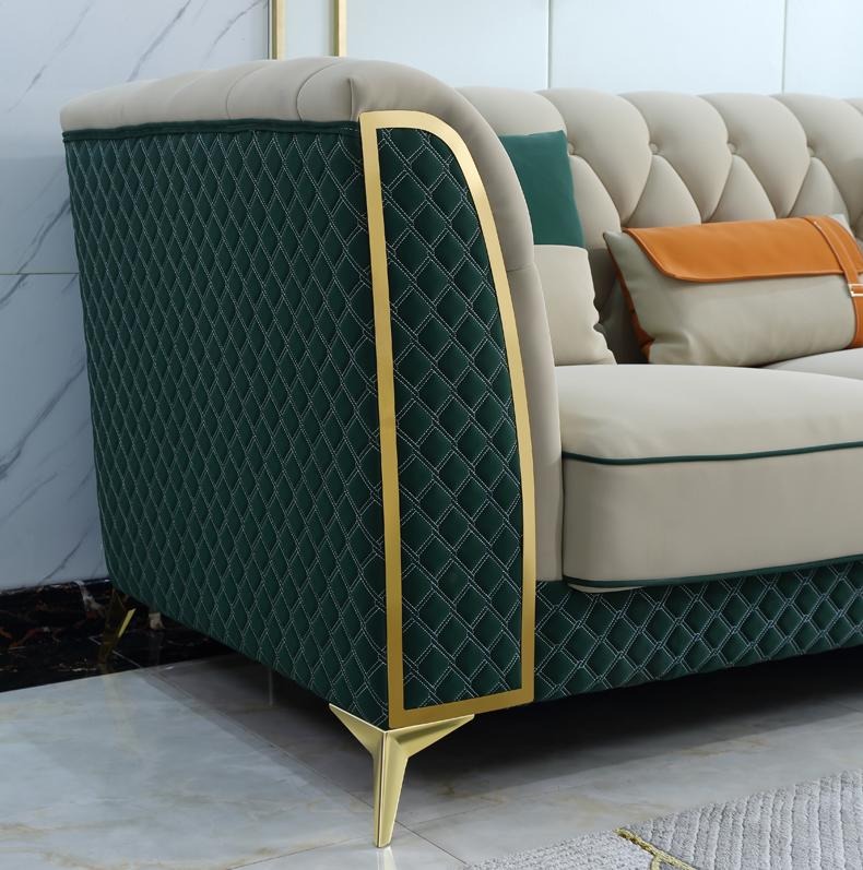 Erwerben Sie die perfekte Ecksofa-L-Form für Ihr Zuhause! Unser Design Ecksofa aus hochwertigem Lederfaserstoff (70% Leder / 30% Polyester) bietet nicht nur Komfort, sondern auch modernes Design. Mit Maßen von 356 x 180 x 92 cm passt es ideal in Ihr Wohnzimmer. Sie haben die freie Farbwahl aus einer Vielzahl von Optionen wie Zyan, Amethyst, Schwarz, Weiß und vielen mehr. Zudem bieten wir verschiedene Materialoptionen wie Premium Echtleder aus Italien oder Textilstoff gegen Aufpreis an. Das Innengestell aus echtem Holz sorgt für Stabilität und Langlebigkeit. Nutzen Sie die Möglichkeit, die Farbe und Größe des Sofas nach Ihren Wünschen anzupassen. Kontaktieren Sie uns direkt für Änderungen oder weitere Informationen. Triff jetzt die richtige Wahl und verleihen Sie Ihrem Zuhause mit unserer modernen L-Form Ledersofa Couch ein elegantes Flair.