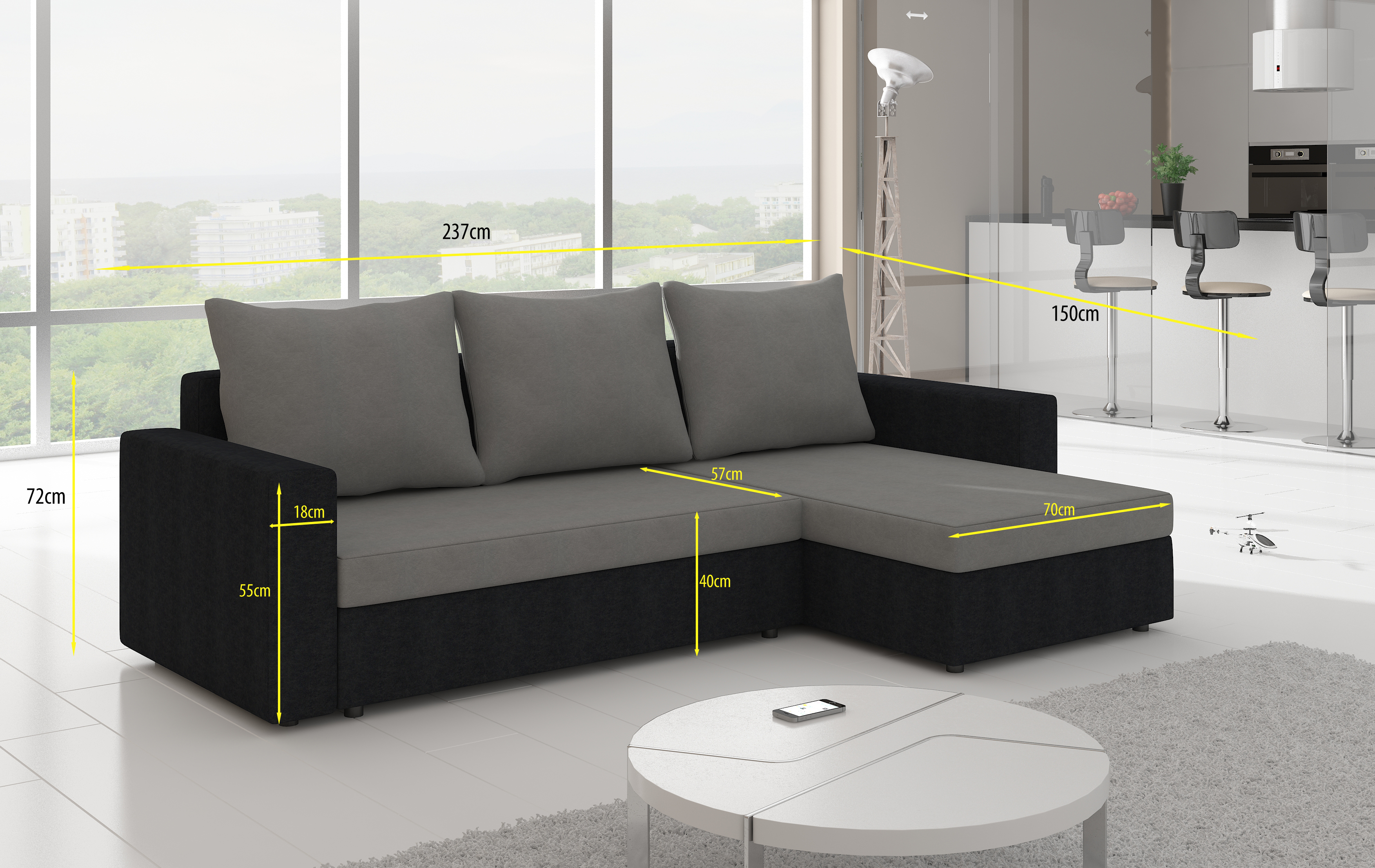 Entspannen Sie in Stil und Komfort mit unserem Design Ecksofa Schlafsofa Bettfunktion Couch Leder Polster Textil Sofas Neu 502 von XL Möbel! Dieses vielseitige Sofa ist nicht nur ein Hingucker in Ihrem Zuhause, sondern verwandelt sich auch bei Bedarf in ein gemütliches Bett für Gäste. Das Ecksofa kommt in den Maßen ca. 237 x 150 cm oder 150 x 237 cm, mit einer angenehmen Höhe von ca. 72 cm und einer komfortablen Tiefe von ca. 80 cm. Die Sitztiefe beträgt ca. 60 cm, perfekt zum Entspannen. Sie haben die freie Wahl der Farbe und des Materials, mit verschiedenen Optionen von Stoffgruppen bis hin zu Kunstleder. Das Innengestell aus echtem Holz sorgt für Stabilität und Langlebigkeit. Geben Sie Ihrem Wohnzimmer einen modernen Touch und holen Sie sich noch heute dieses einzigartige Ecksofa mit Schlaffunktion!