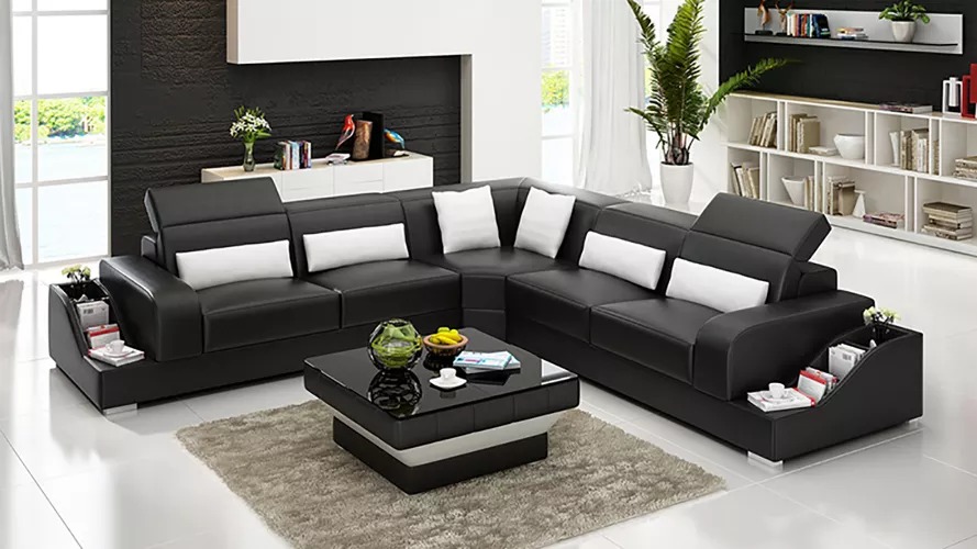 Möbelset, Ecksofa und Tisch, hochwertige Materialien, moderner Stil