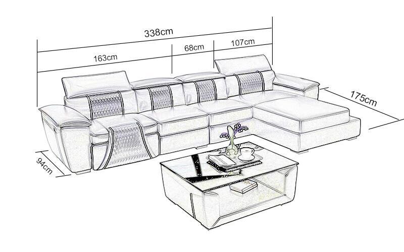 Entspannen Sie in Stil mit unserem modernen Eck Stoff Ecksofa in L-Form! Dieses elegante Sofa ist nicht nur ein Blickfang in Ihrem Wohnzimmer, sondern bietet auch höchsten Komfort. Hergestellt aus hochwertigem Premium Lederfaserstoff, können Sie zwischen verschiedenen Gruppen wählen, um Ihren persönlichen Stil zu unterstreichen. Die Maße des Ecksofas betragen ca. 338 x 175 oder 175 x 338 cm in der Länge, 75 cm in der Höhe und 94 cm in der Tiefe. Die Sitzfläche ist ca. 44 cm hoch und 58 cm tief, was für gemütliches Sitzen sorgt. Die Farbe des Sofas ist wie abgebildet, aber optional stehen verschiedene Farben zur Auswahl. Der Korpus dieses hochwertigen Sofas besteht aus einem echten Holzgestell, das Stabilität und Langlebigkeit garantiert. Entscheiden Sie sich für Premium Echtleder, Textilstoff oder Vollleder gegen Aufpreis, je nach Ihren Vorlieben und Bedürfnissen. Gestalten Sie Ihr Wohnzimmer neu und verleihen Sie ihm mit unserem modernen Ecksofa einen frischen Look. Bestellen Sie jetzt und machen Sie Ihr Zuhause noch gemütlicher!
