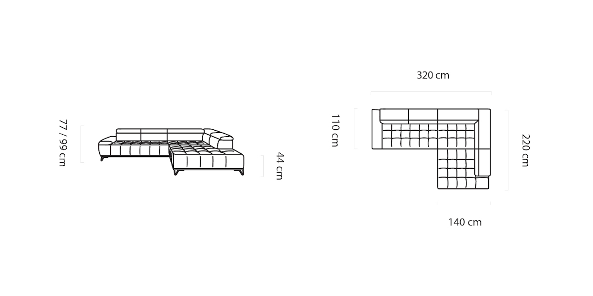 320 x 220 x 77/99 cm