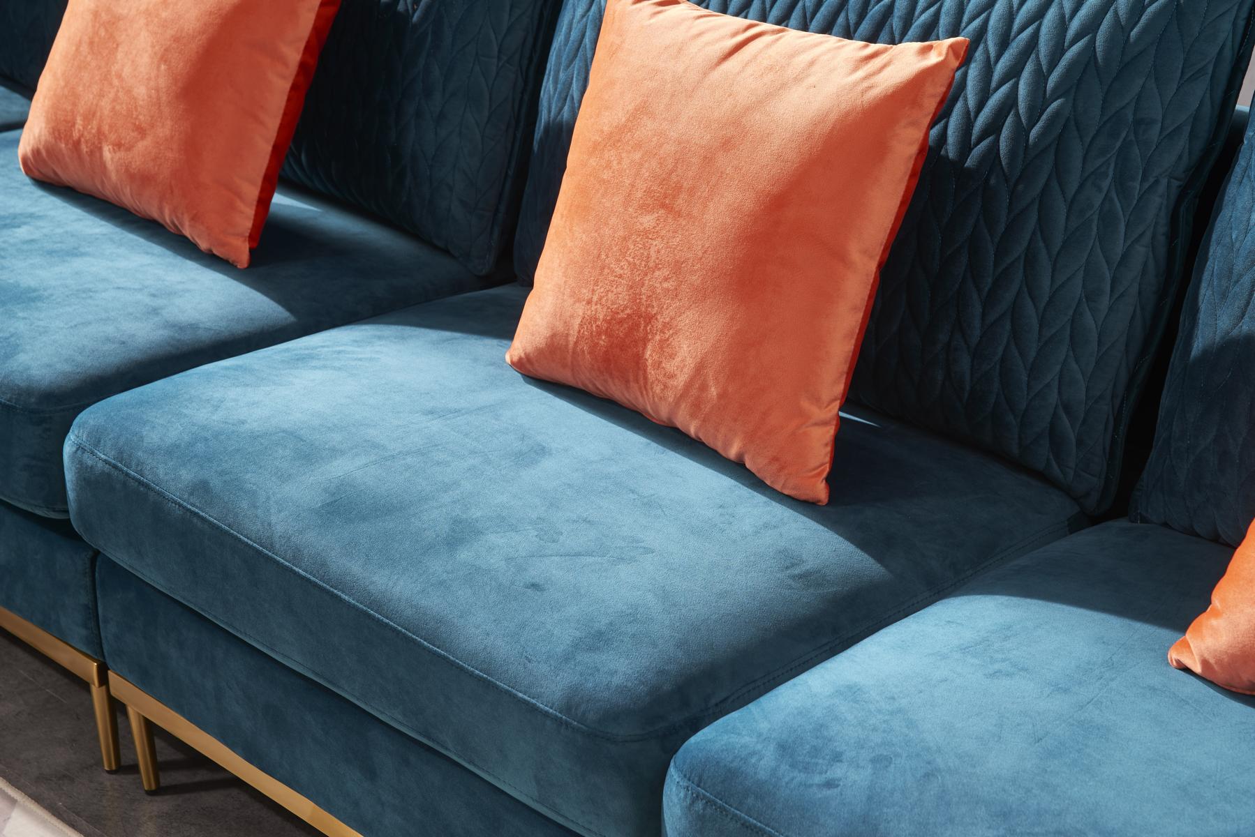 Suchen Sie nach Luxus und Stil für Ihr Zuhause? Dann ist dieses Ecksofa in L-Form mit einem passenden Couchtisch genau das Richtige für Sie! Die weiche Polsterung in einem eleganten Blau verleiht Ihrem Wohnzimmer eine luxuriöse Note. Hergestellt aus hochwertigem Holz, Edelstahl und Textil, bietet dieses Möbelstück nicht nur Komfort, sondern auch Langlebigkeit. Mit Maßen von ca. 355 x 175 cm (L-Form) und einem Couchtisch von ca. 130 cm Länge passt dieses Set perfekt in Ihr Zuhause. Holen Sie sich jetzt dieses einzigartige Sofa, um Ihre Wohnzimmer-Einrichtung auf das nächste Level zu heben!