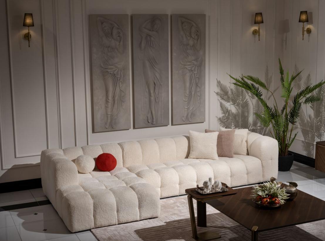 Entspannen Sie in Luxus und Komfort mit unserem modernen Ecksofa Stoffsofa in Weiß! Die weiche Polsterung lädt zum Relaxen ein, während das stilvolle Design Ihrem Wohnzimmer einen Hauch von Eleganz verleiht. Das Ecksofa ist in L-Form und verfügt über großzügige Maße von ca. 345 cm Länge, 160 cm Breite, 96 cm Höhe und 100 cm Tiefe. Hergestellt aus hochwertigem Holz und Stoff, bietet dieses Sofa sowohl Stil als auch Langlebigkeit. Sichern Sie sich jetzt Ihr neues Lieblingsmöbelstück und gönnen Sie sich puren Luxus zu Hause!