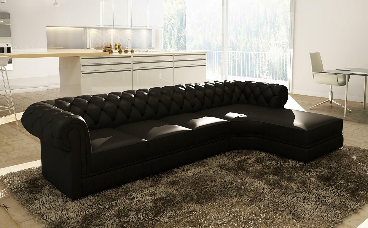 Klassiche Chesterfield Polster Sitz Eck Leder Garnitur Wohnlandschaft